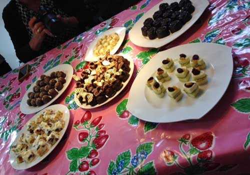 Ieder jaar komen deze groep dames bij elkaar die allemaal nichten van elkaar zijn. De organisatie rouleert en dit jaar had de driekoppige commissie besloten om lekker thuis te blijven en culinair aan de slag te gaan met chocolade. Een hele goede keuze! Lekker ontspannend bezig zijn met prachtige resultaten onder de begeleiding van een consulente van Kookparty. Bent u ook op zoek naar een smakelijke activiteit bij u op locatie of op het bedrijf? Neem dan vrijblijvend contact op!