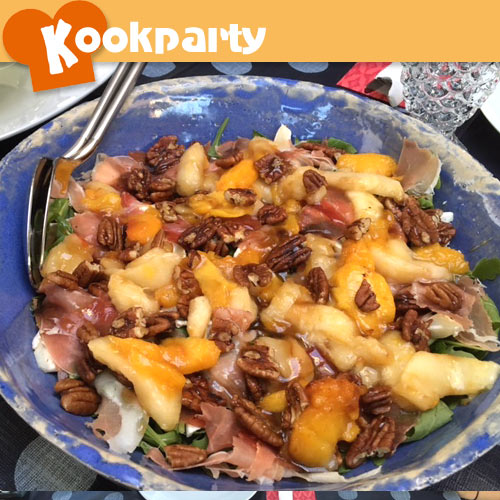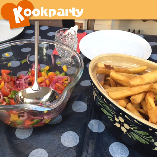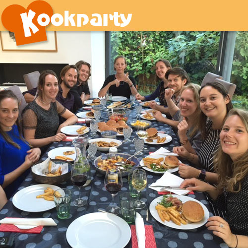 Als je vriendin in het voorjaar naar Australië is geweest en dan een paar maanden later haar dertigste verjaardag viert wat doe je dan? Dan nodig je haar vriendinnen en familie uit en dan geef je een verrassingskookfeest met als thema Australië. De jarige wist van niks en werd geblinddoekt haar ouderlijk huis binnengesmokkeld. Daar werd ze opgewacht door haar naasten en de kookconsulente van Kookparty. Na wat uitleg kon iedereen aan het werk en zijn de lekkerste gerechtjes bereid. We begonnen met een flirtini cocktail en carpacio wraps om de ergste honger te stillen. Daarna zijn er beer battered fries (friet in bierbeslag) gemaakt, maïskoekjes, een Australian pie, twee heerlijke salades waarvan eentje met geitenkaas en geroosterde perzik en natuurlijk mochten de echte Australische workerburgers niet ontbreken. Als nagerecht kwam er heuse pavlova en shortbread op tafel. De jarige en de gasten vonden het geslaagd en hebben een superleuke avond gehad.