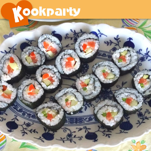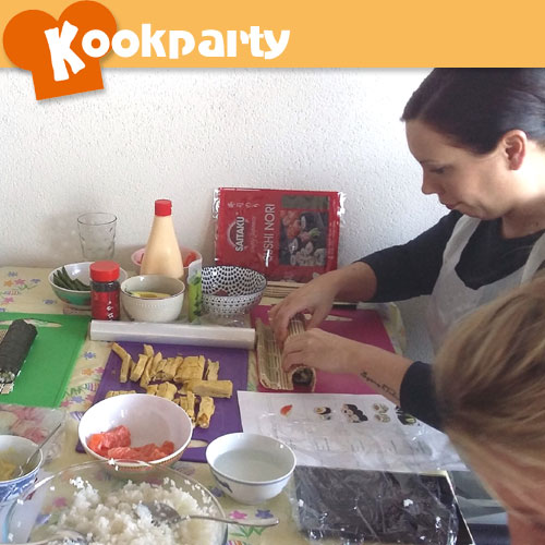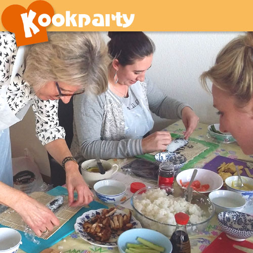 Juist! Dan vermaken de vrouwen zich met een gezellig dagje samen! Na in de ochtend een mooi bloemstuk te hebben gemaakt voor de Pasen, werd de middag gevuld door een gezellige en leerzame Sushiworkshop, verzorgd door Kookparty. De fijne kneepjes van een goede sushirijst koken, Japanse omelet maken en Sushi rollen hadden de dames snel in de vingers. Wil jij ook leren hoe je smaakvolle Sushi kunt maken? Nodig Kookparty uit en geniet!