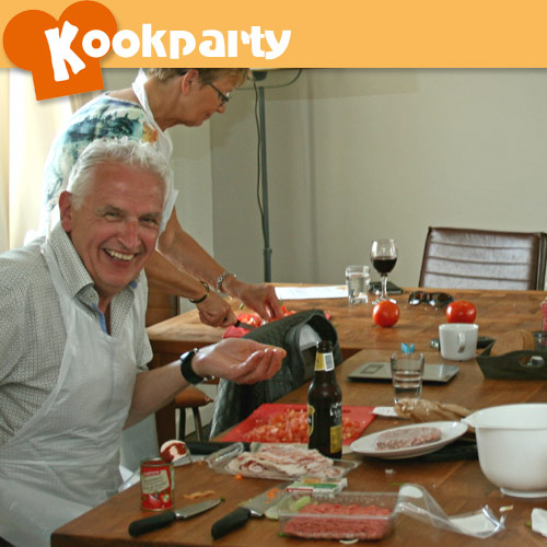 5 stellen die al 40 jaar bevriend zijn, en iedere 1,5 jaar samen een weekend weg gaan. Dit keer hadden zij een Italiaanse kookworkshop bij Kookparty geboekt. Het was een leuke middag met gezellige bedrijvigheid. Iedereen was lekker bezig op zijn eigen manier. Op het menu stond pizza met zelfgemaakte bodem, verse, zelfgemaakte tagiatelle met een groente saus en een Ruga alla Bolognese en voor bij de koffie als nagerecht een Limoncello truffel en een walnoot-dadel bonbon.