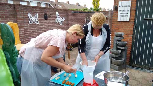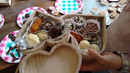 Bianca was dit keer aan de beurt om een leuke activiteit met vriendinnen te organiseren. Voorproefje met familie had ze al gehad en dit keer mochten de vriendinnen bonbons gaan maken samen met kookparty. Wat hebben ze een lol en plezier met elkaar gehad en dat dan ook nog eens het weer lekker meezat kon de middag al niet meer stuk. Na afloop konden de mooie hartendoosjes gevuld worden. Proeven doen ze later..... want er werd ook nog gezellig met elkaar gegeten. Boek ook eens een bonbonworkshop bij kookparty of één van de andere leuke party's bij kookparty en laat je verrassen met leuke recepten door de consulente.