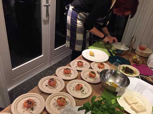 Kookparty was dit weekend in Uden om een heel speciaal verjaardagsfeest de vieren met de jarige Conny. Zij had al haar vriendinnen uitgenodigd voor een heerlijke kookworkshop aan huis. En wat waren er een boel lekkere gerechten, het was smullen! Wilt u ook uw verjaardag vieren met zo'n leuke kookworkshop? Vraag dan vrijblijvend meer informatie aan!