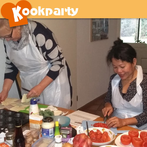 Yolanda is 50 jaar geworden en dit wilde haar schoonzussen graag met haar vieren door een workshop te doen. Yolanda is zelf een expert in Aziatische keuken dus was de wens Spaanse tapas. De resultaten zagen er prachtig uit en smaakte heerlijk! Het was een zeer geslaagde en gezellige middag.