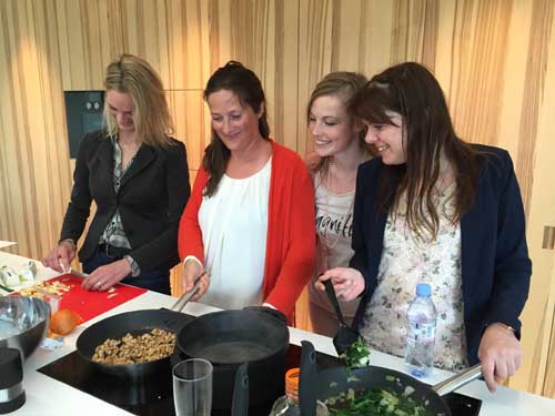 Vier je verjaardagsfeest met een gezellige kookworkshop. Deze dames uit Kapellen België maakten met elkaar een heerlijk 4-gangen diner inclusief prachtige verjaardagstaart.
