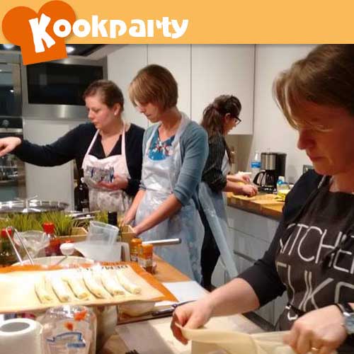 A.s. bruid Sofie werd verrast door haar lieve zus en vriendinnen thuis met een kookworkshop. Met z'n vijven heerlijke tapas en fingerfoodgerechten gemaakt. In de keuken rook het heerlijk. De mannen sloten na 3 uur gezellig aan om met elkaar te genieten van al het lekkers. Mooie trouwdag op 12 december toegewenst !! Ook je zus of vriendin eens verrassen met een kookworkshop, neem dan gerust contact met ons op.
