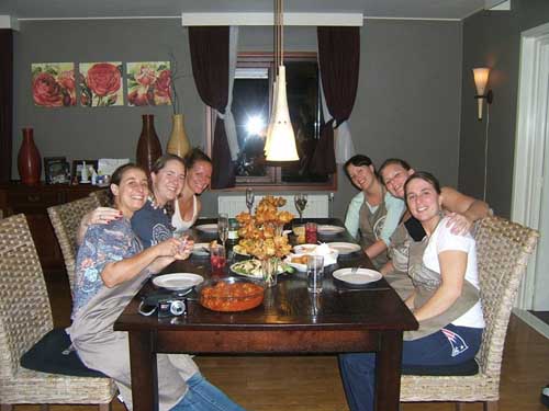 Deze dames kennen elkaar van de studie in Breda en wonen verspreid over heel Nederland, elk jaar proberen zij een weekend te plannen en overnachten dan in een vakantiehuis. Dit jaar is Kookparty uitgenodigd om een Tapasworkshop te komen verzorgen in het vakantiehuis. Onder het genot van een drankje zijn ze gezellig aan de slag gegaan met als resultaat een tafel vol lekkere tapas.