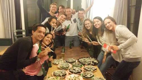 Deze neven en nichten gingen (mét aanhang) een weekend weg in eigen land. Dat werd Volendam én een sushi party. Ook in een vakantiehuisje is dat mogelijk. Ze waren verbaasd over hun eigen talenten en genoten van hun zelfgemaakte sushi.